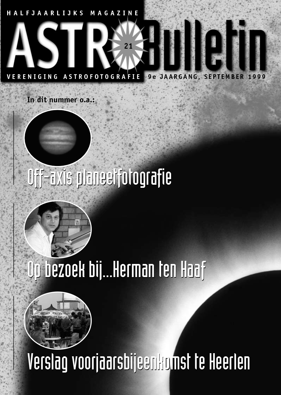 Hieronder staan de omslagen van ASTROBulletin nummer 15 (oktober 1996) tot en met het laatst verschenen nummer vermeld. Klik op een omslag voor een totaalplaatje en verschijningsmaand/jaar van dat nummer. Wil je een of meerdere uitgaven bestellen? Mail jouw aanvraag naar archiefbeheerder Bert van Dijk, superconductor@hetnet.nl. Bij een bestelling van meerdere nummers is er een leuke combi-korting te krijgen!