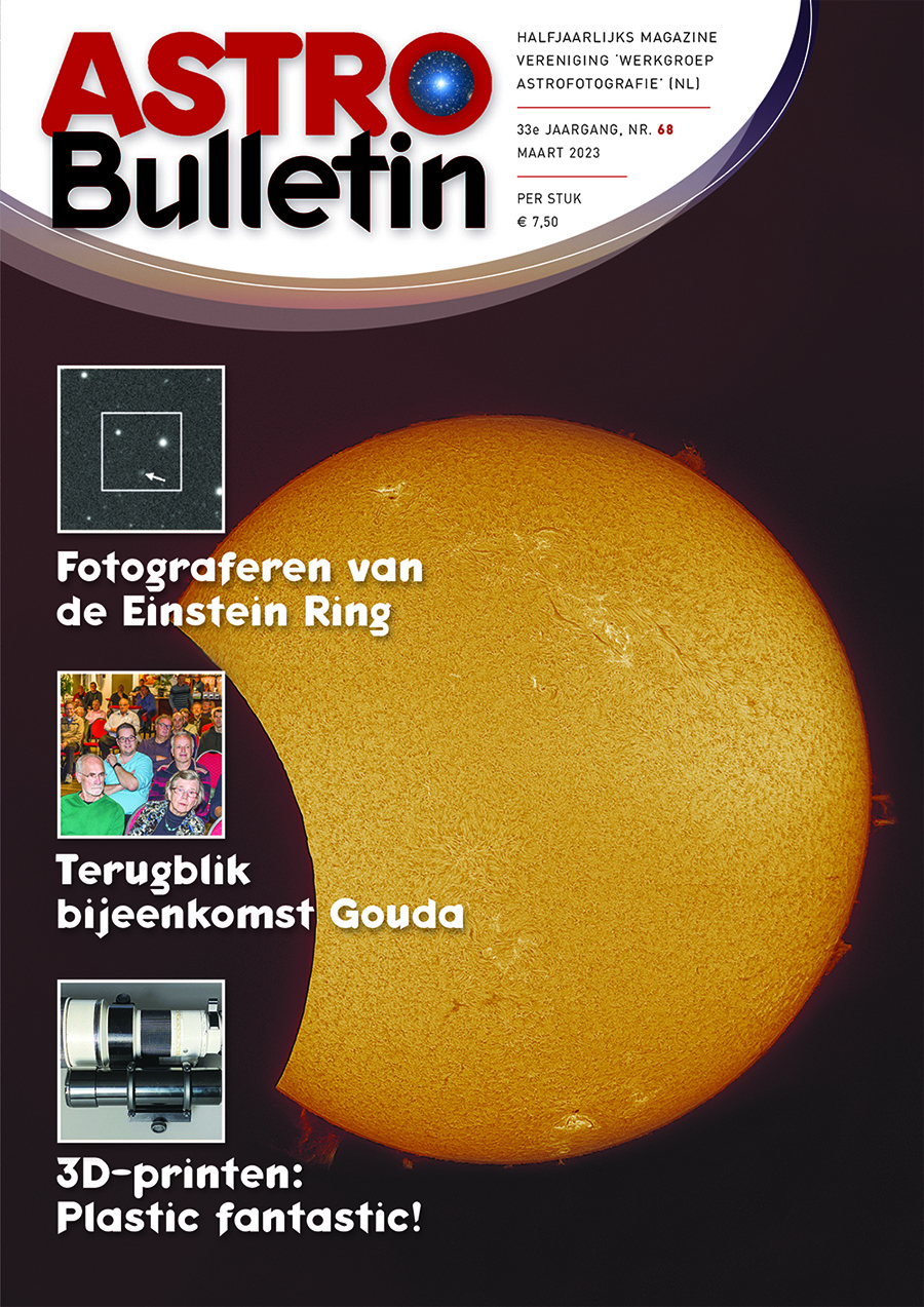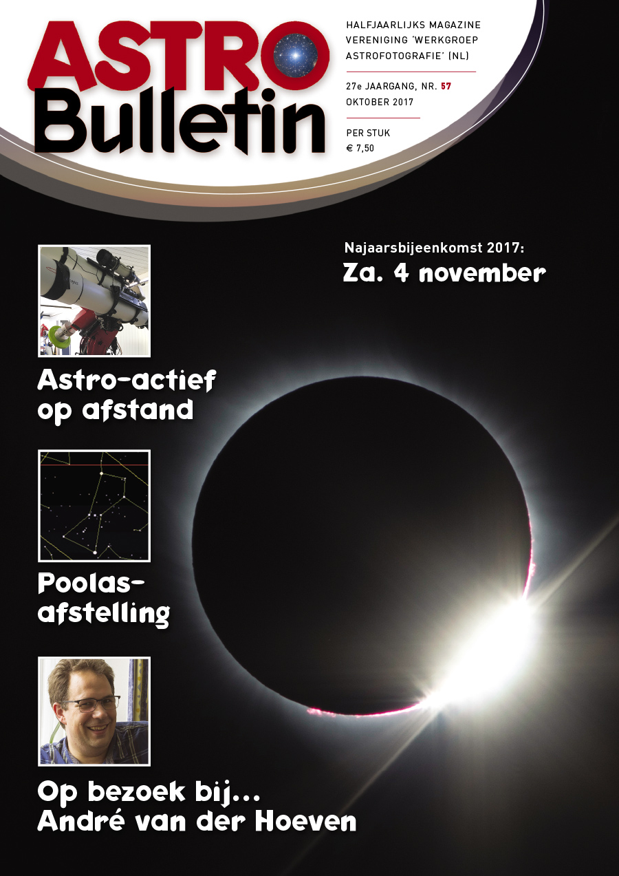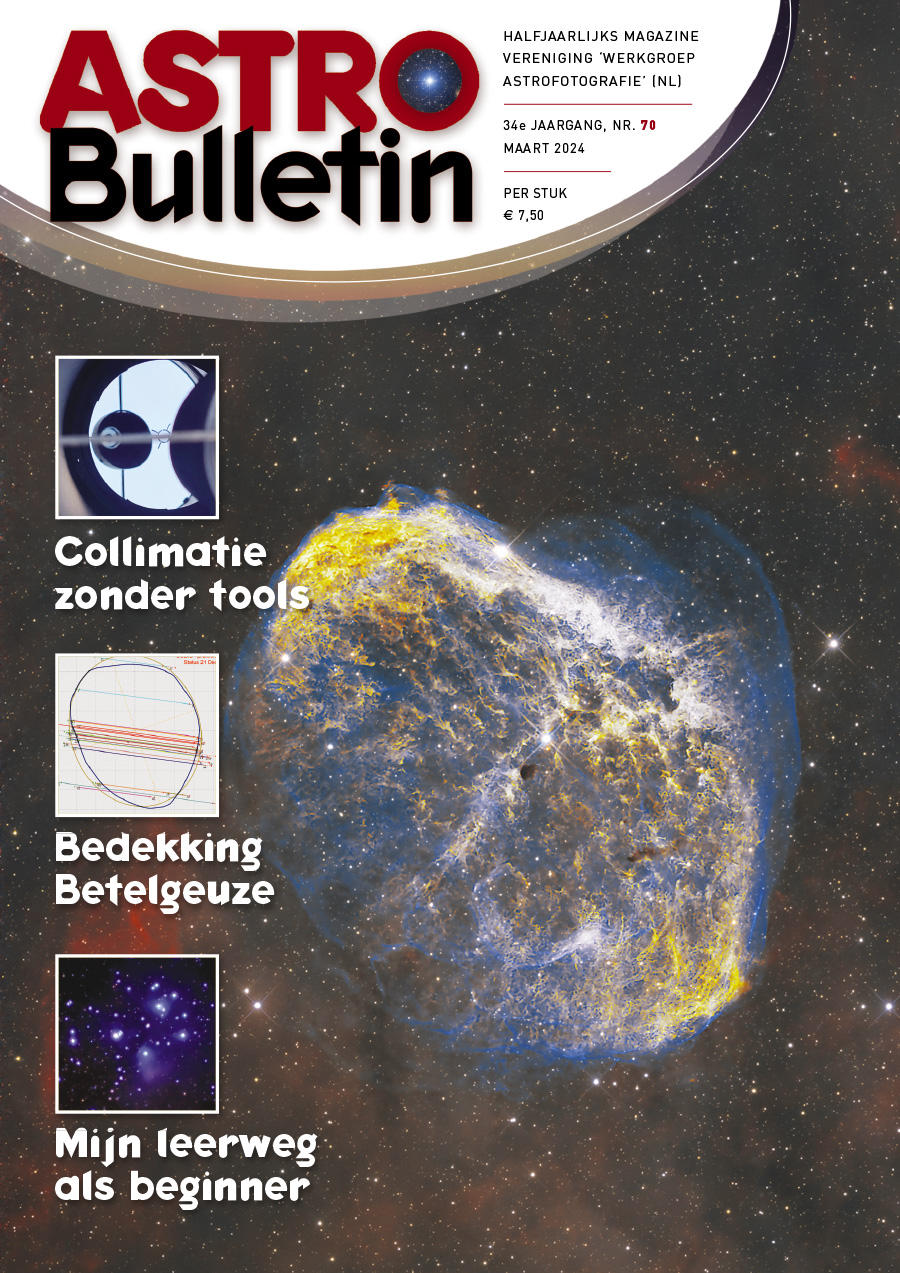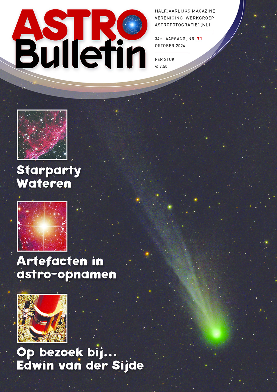 Het verenigingsmagazine ASTROBulletin is een halfjaarlijkse uitgave van vereniging ‘Werkgroep Astrofotografie’, exclusief voor leden. Het heeft een A5-formaat, is geheel in full colour gedrukt op glimmend papier en verschijnt tweemaal per jaar (in maart en in oktober). Het is het visitekaartje van de vereniging waar we trots op mogen zijn.