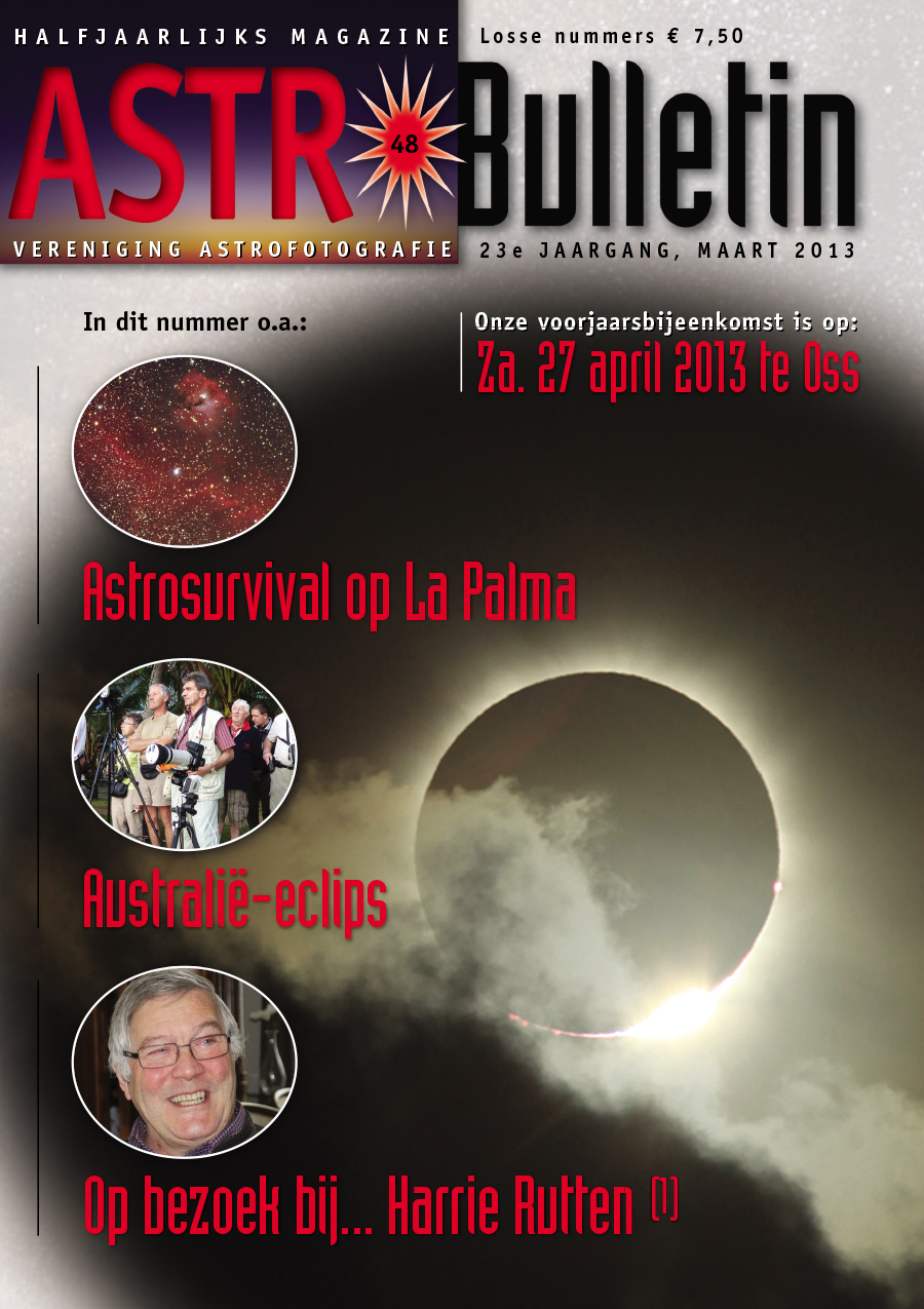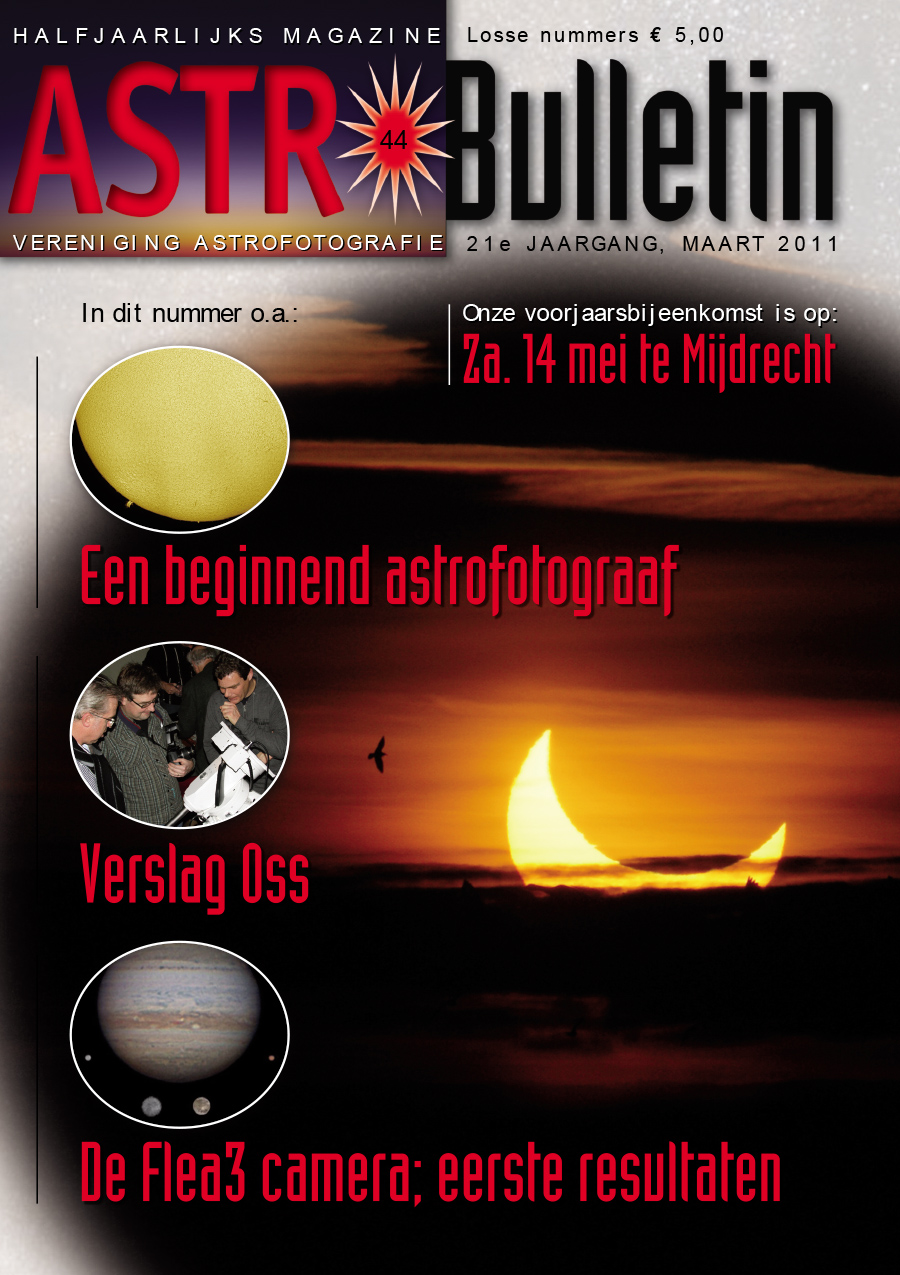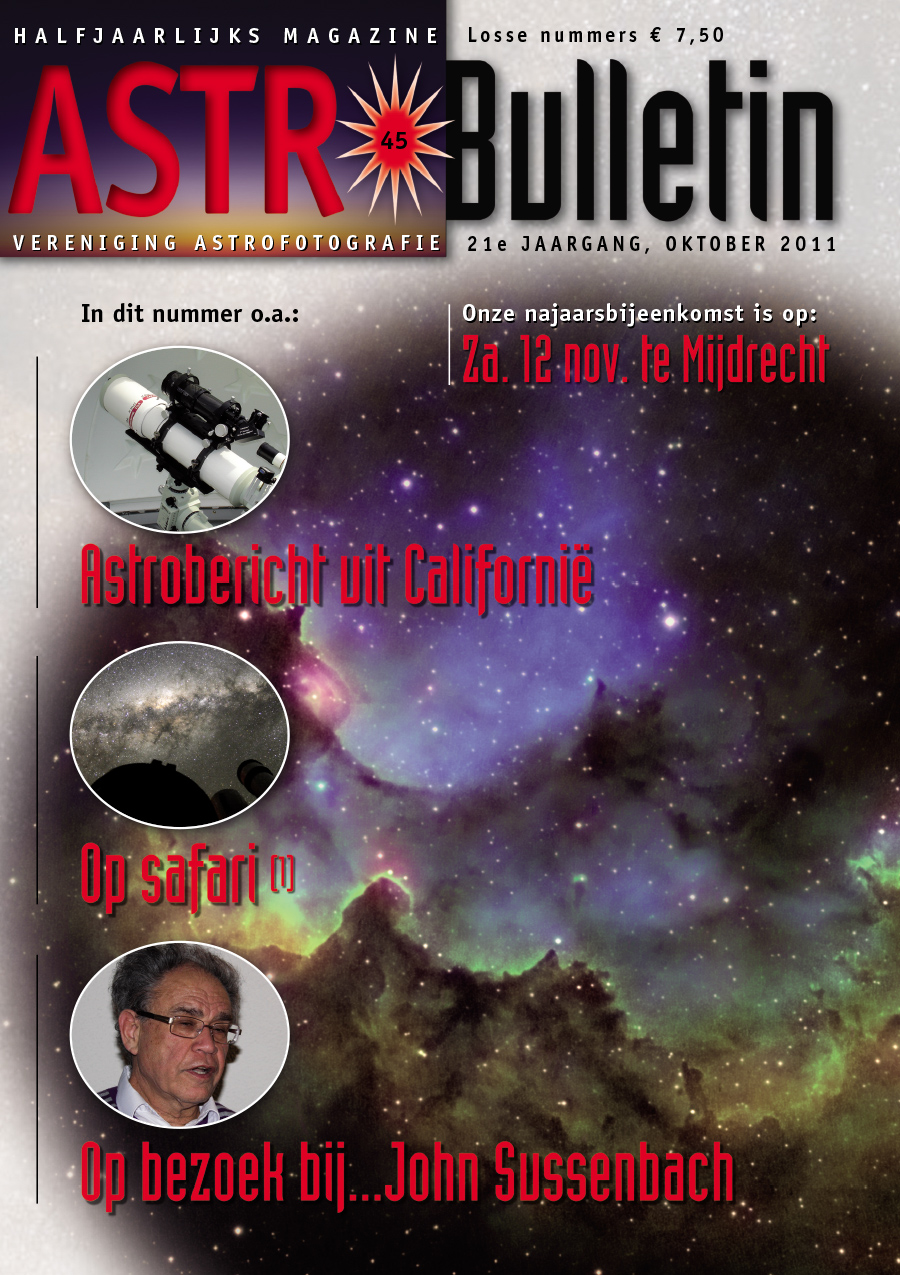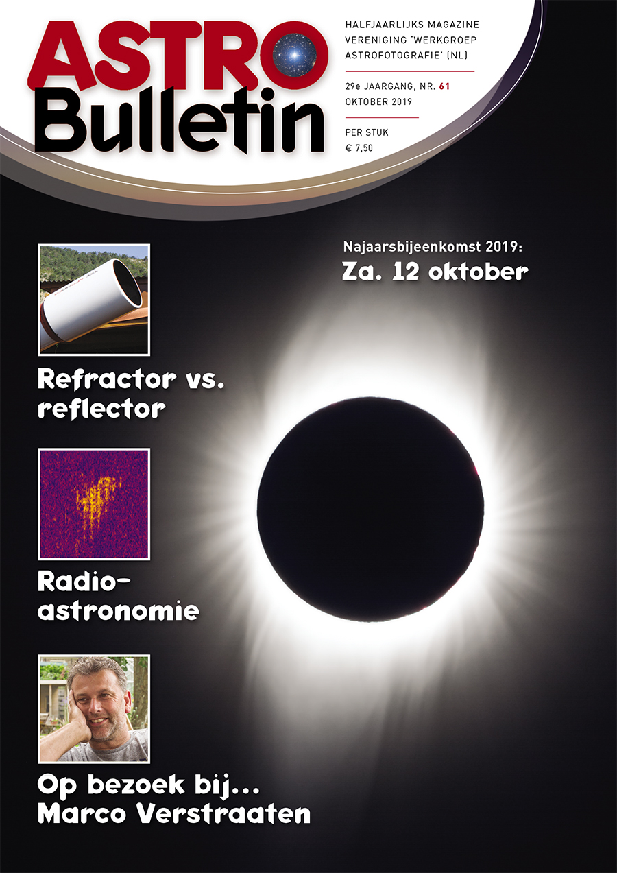 Het verenigingsmagazine ASTROBulletin is een halfjaarlijkse uitgave van vereniging ‘Werkgroep Astrofotografie’, exclusief voor leden. Het heeft een A5-formaat, is geheel in full colour gedrukt op glimmend papier en verschijnt tweemaal per jaar (in maart en in oktober). Het is het visitekaartje van de vereniging waar we trots op mogen zijn.