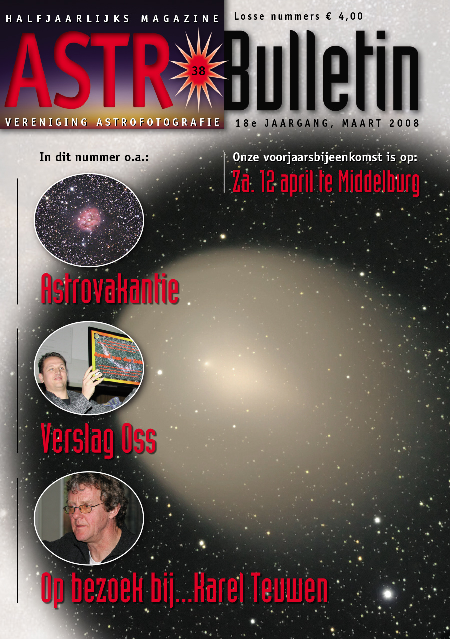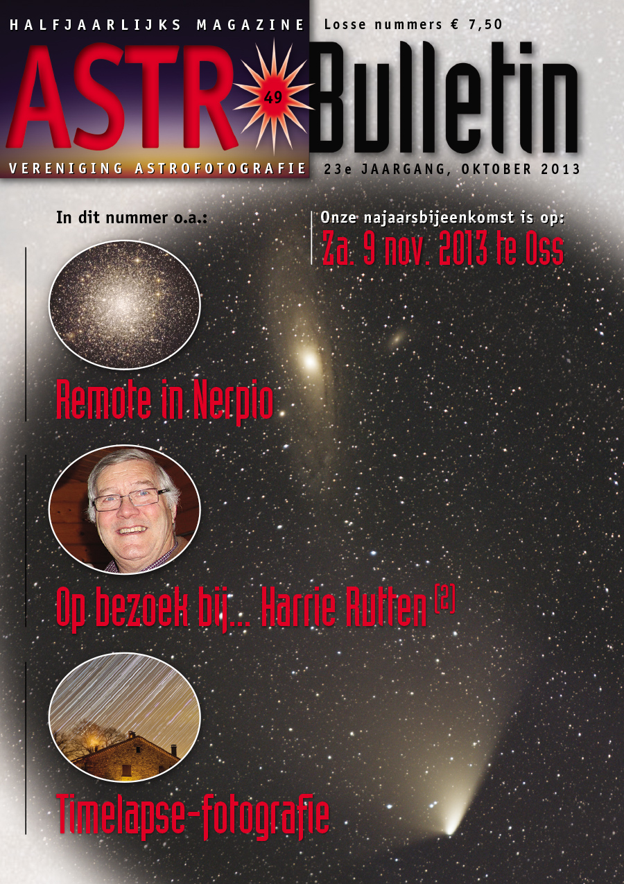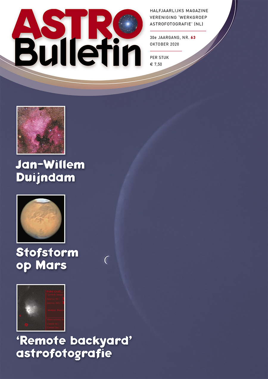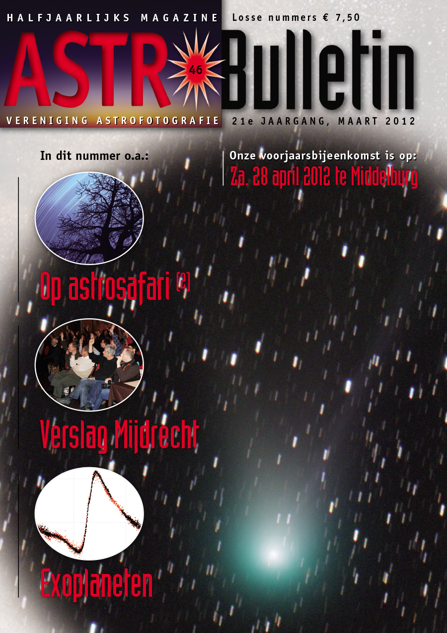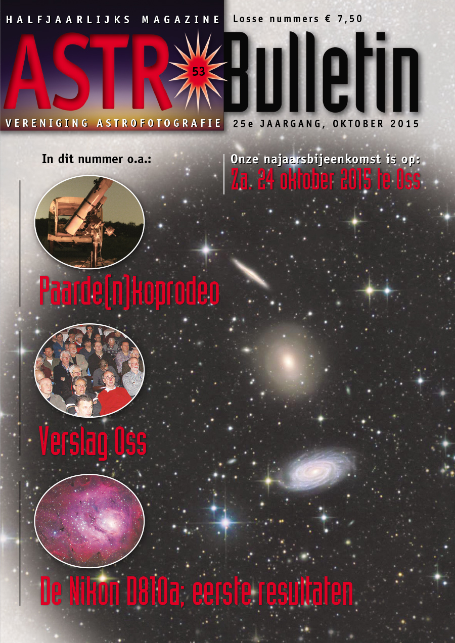 Het verenigingsmagazine ASTROBulletin is een halfjaarlijkse uitgave van vereniging ‘Werkgroep Astrofotografie’, exclusief voor leden. Het heeft een A5-formaat, is geheel in full colour gedrukt op glimmend papier en verschijnt tweemaal per jaar (in maart en in oktober). Het is het visitekaartje van de vereniging waar we trots op mogen zijn.
