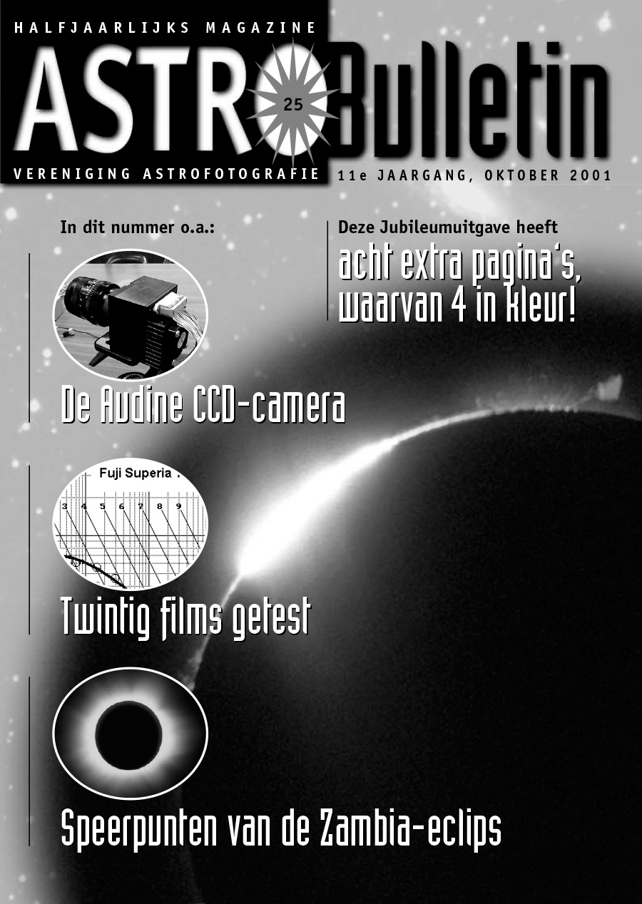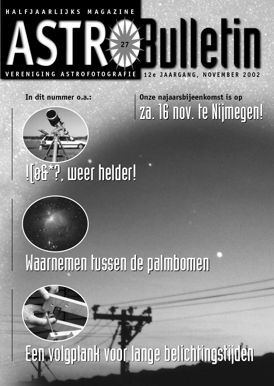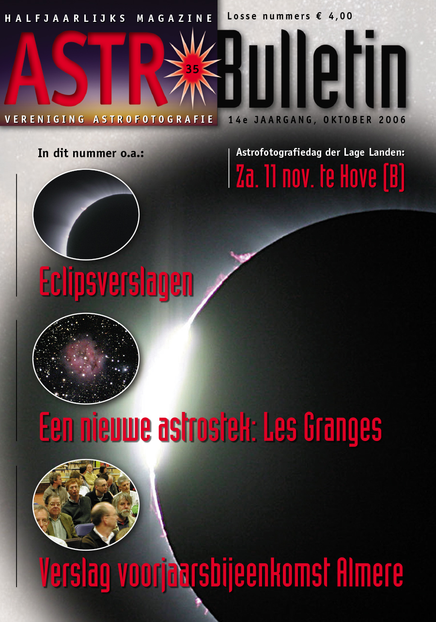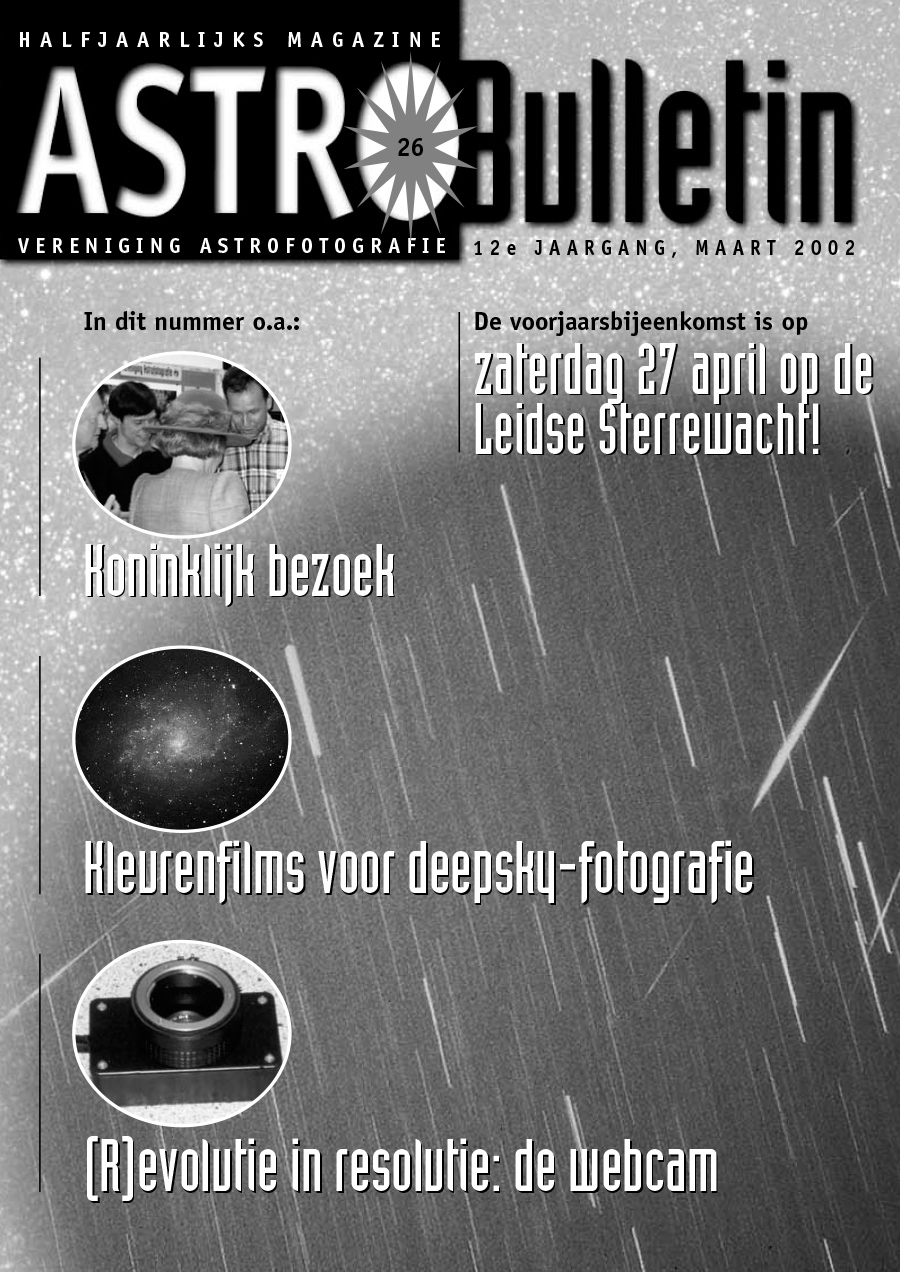 Het verenigingsmagazine ASTROBulletin is een halfjaarlijkse uitgave van vereniging ‘Werkgroep Astrofotografie’, exclusief voor leden. Het heeft een A5-formaat, is geheel in full colour gedrukt op glimmend papier en verschijnt tweemaal per jaar (in maart en in oktober). Het is het visitekaartje van de vereniging waar we trots op mogen zijn.